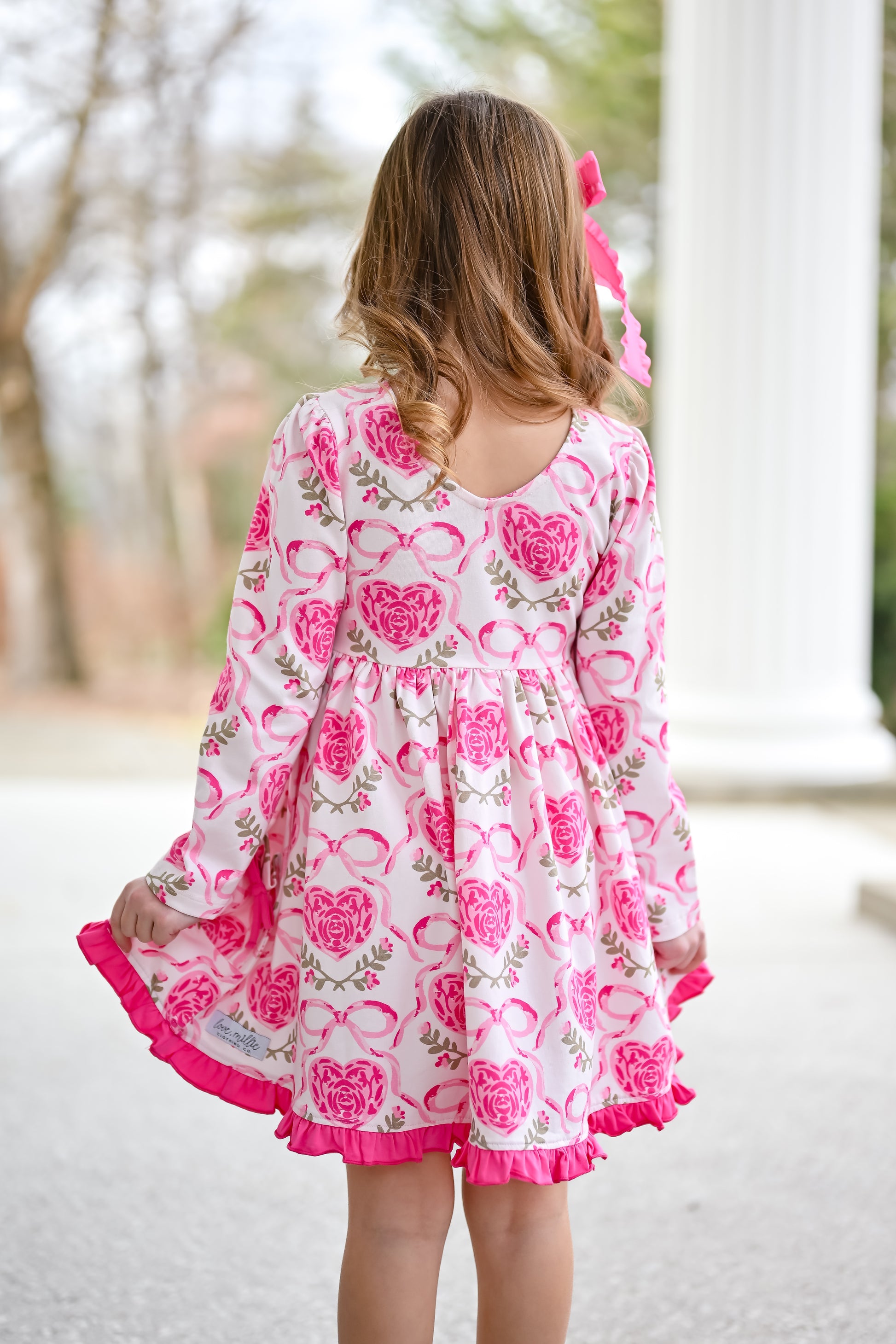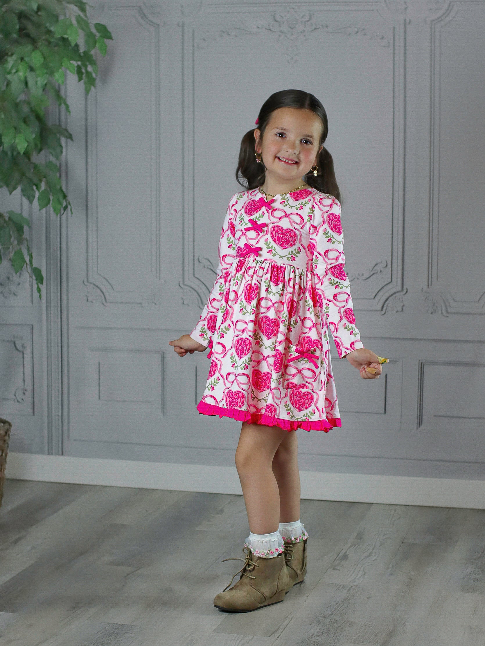 Twirl into sweetness with the Forever Valentine Lilly Dress, where rosy hearts and dainty bows dance across soft fabric. This charming design captures the whimsical spirit of Love Millie, perfect for little ones who love to spin and play. The timeless details make it ideal for everyday adventures or special occasions, bringing joy and style together in one delightful package.