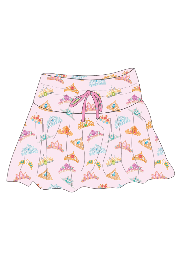 Step into adventure with the Princess Crowns Athletic Skort! This playful two-in-one design features a built-in pink base with charming aqua blue dot shorts underneath, giving you the best of both worlds. Perfect for active park days or casual everyday wear, it pairs beautifully with our matching tank top for a coordinated look. Comfortable, cute, and ready for whatever your day brings!