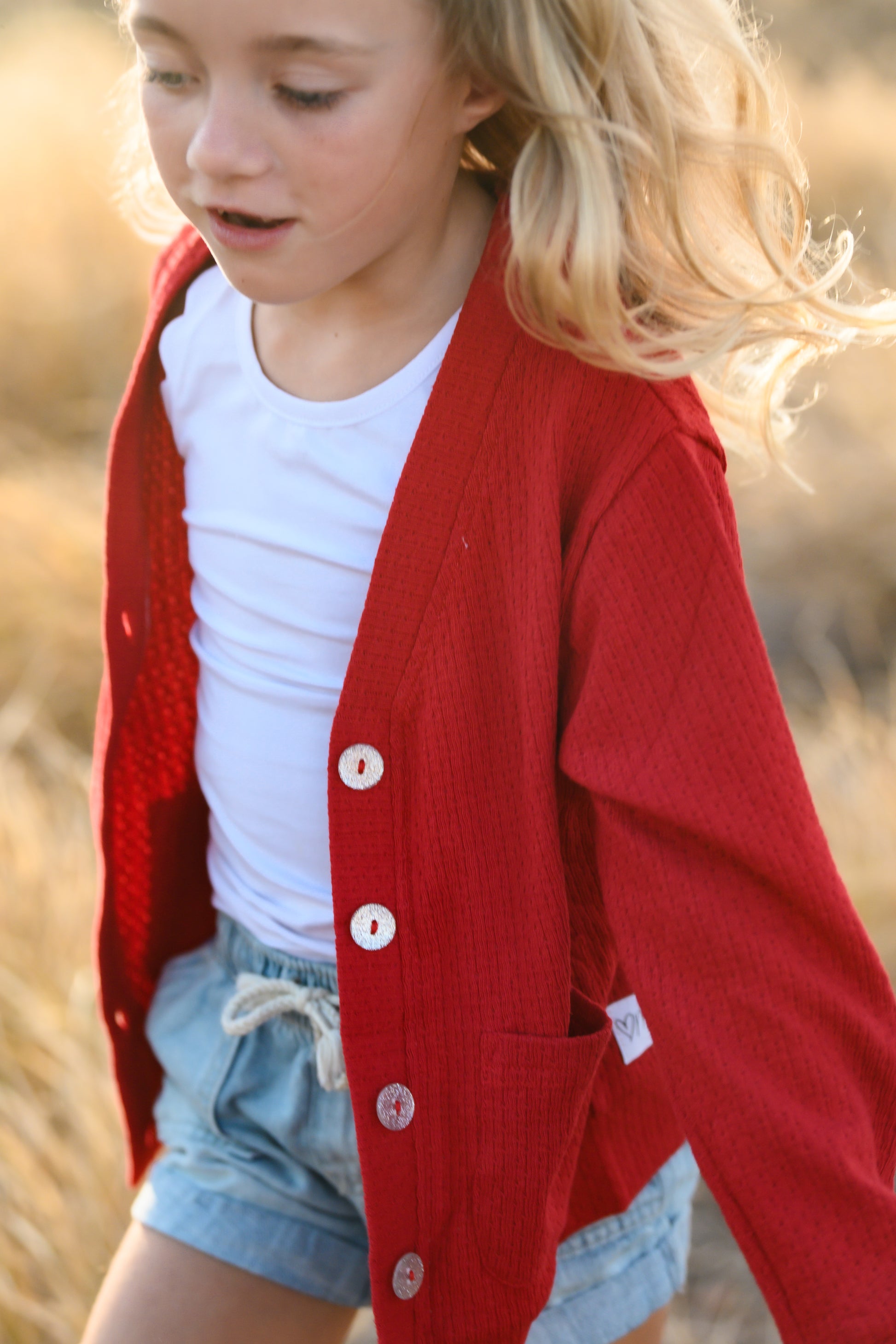 Get ready to cozy up in style with our Red Cardigan! This cardigan is perfect for fall, winter, and spring, making it a versatile addition to your wardrobe. With Glittery buttons, you'll be feeling cute and comfortable all season long.